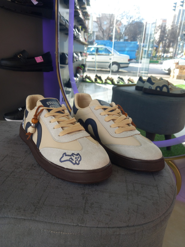 ونس سامبایی طرح گلدوزی میو کرم سرمه ای