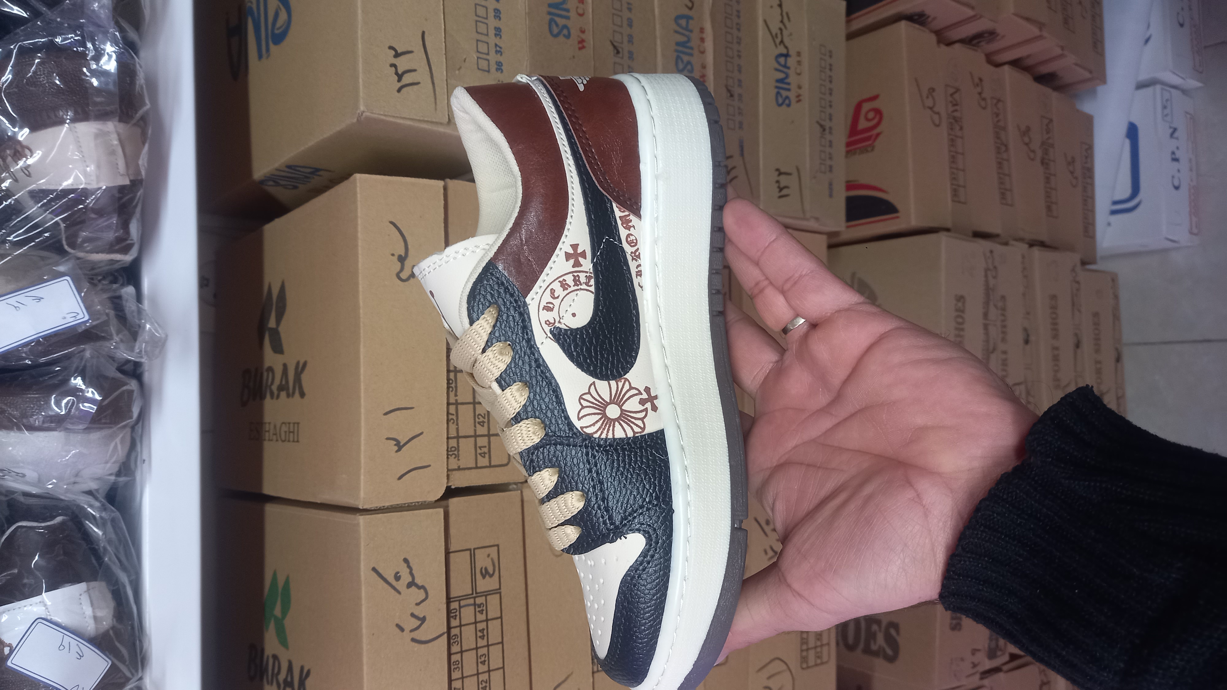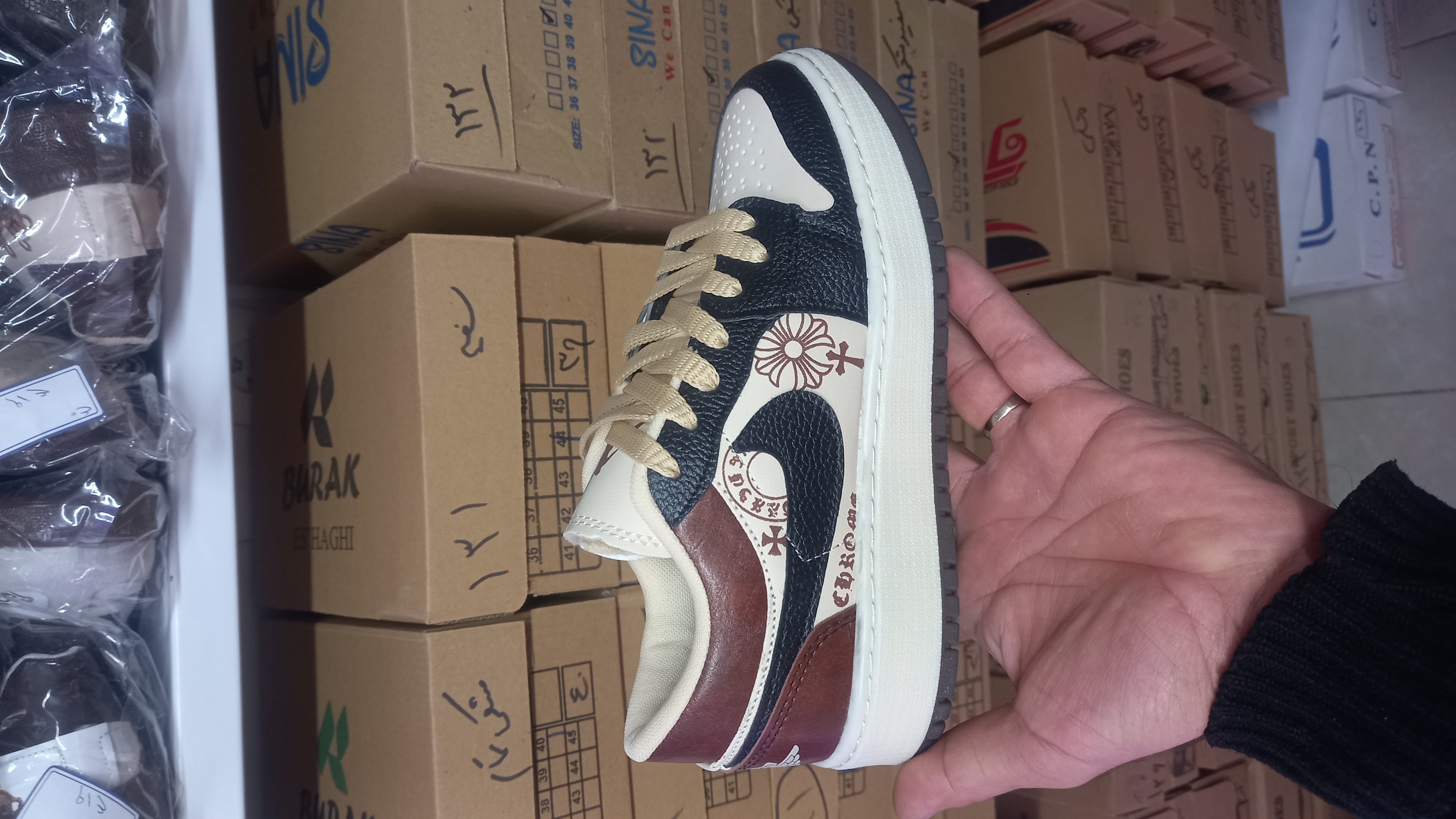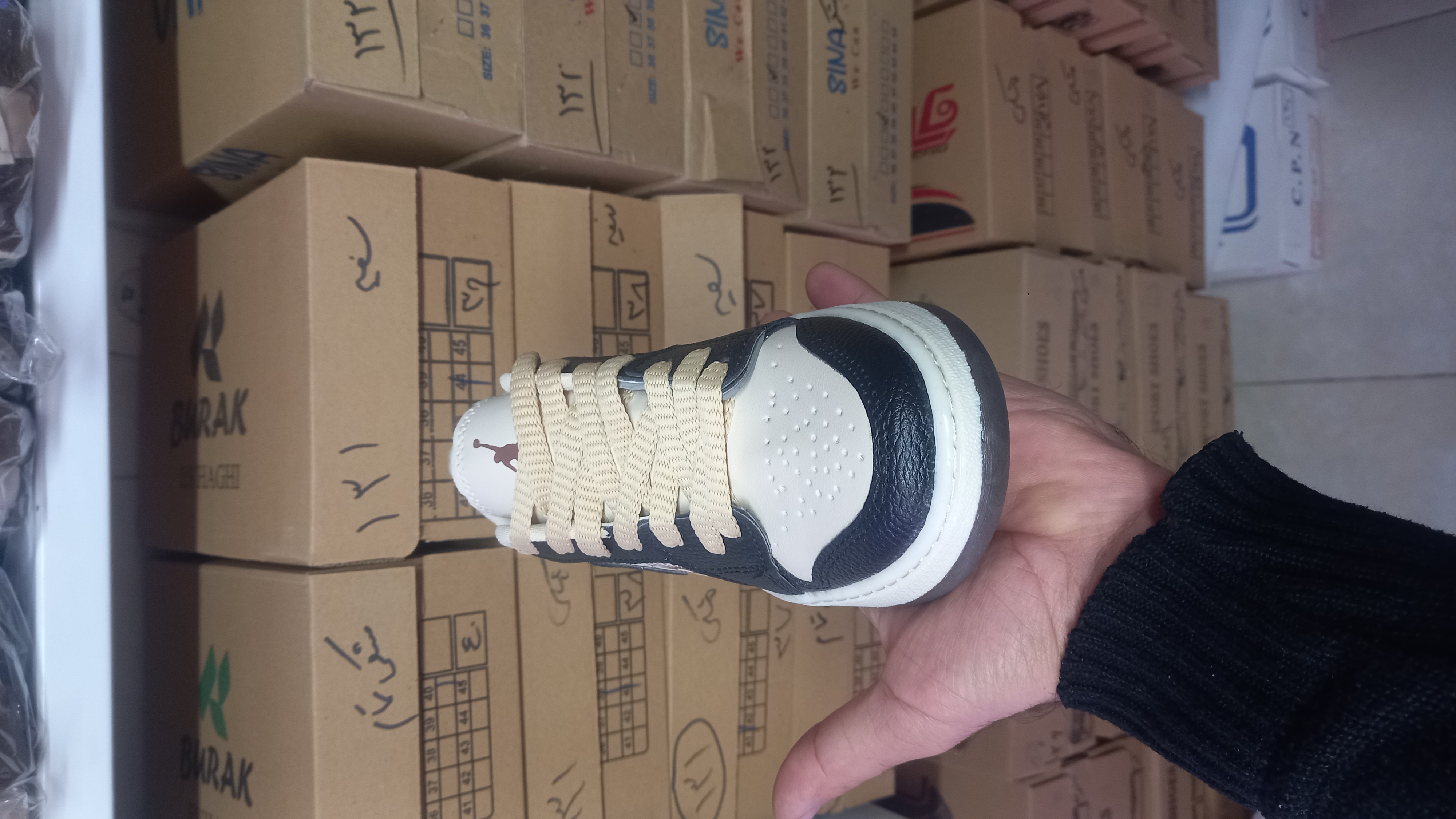 کفش جردن وان با رنگ جدید جذاب ترند زیره پی وی سی مواد اولیه درجه یک رویه چرم مصنوعی عالی کف دوخت دور دوخت نرم و منعطف و راحت بادوام و روزمرگی